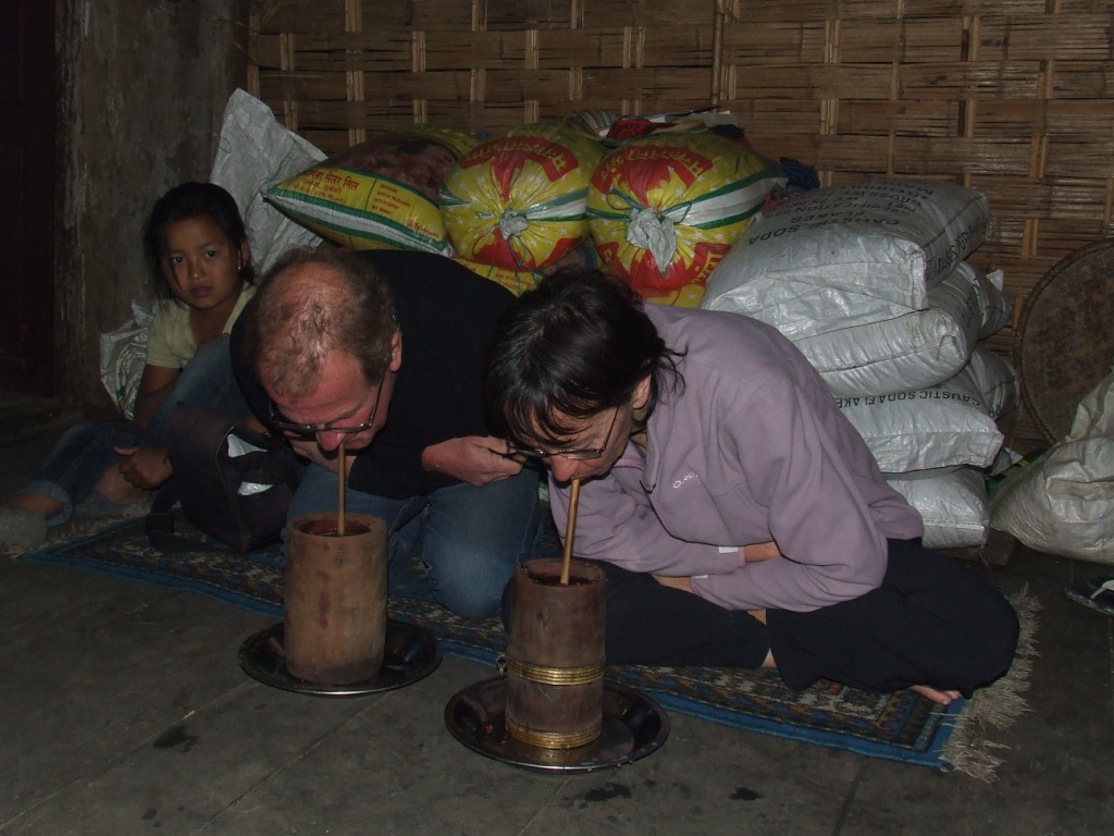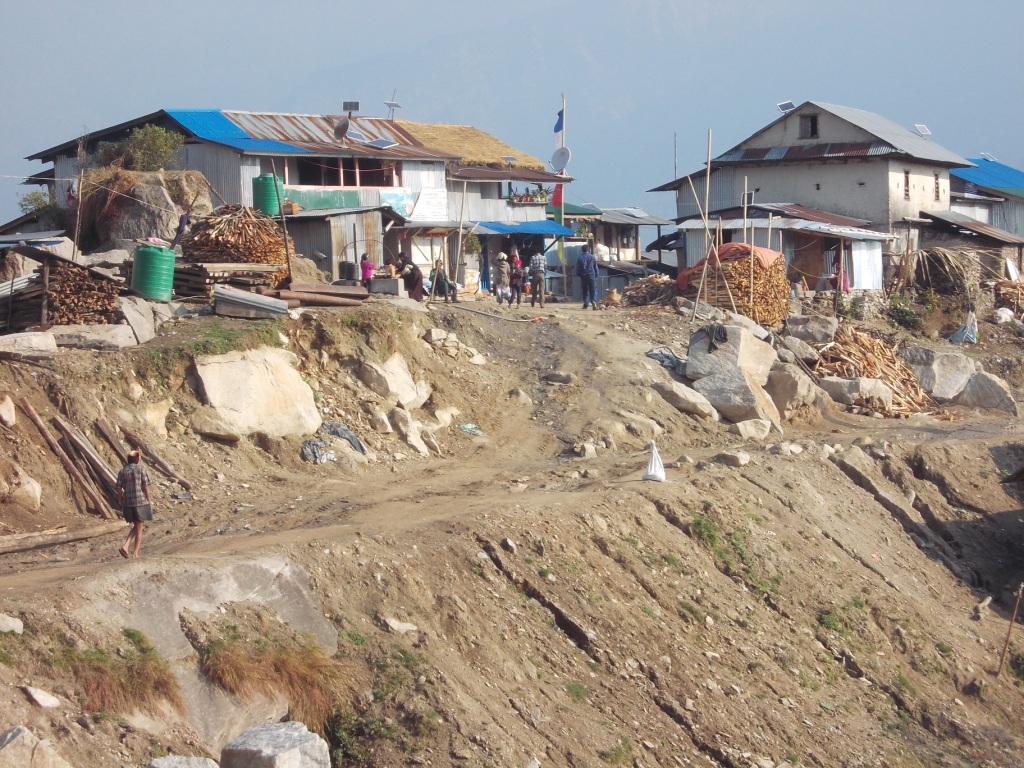Le lodge (Himalaya Trekkers) qui nous accueille est neuf et bien entretenu. Il possède même une douche chaude! Bon dalbath et excellent raksi à base de millet, « barli » et coing? diurétique en tous cas! 2000Rs pour le dîner la nuitée et le petit déjeuner.