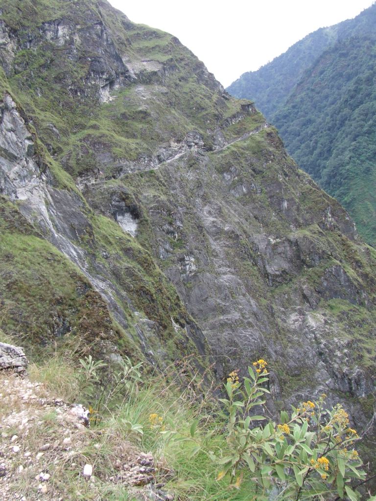 Les gorges de l’Inkhu khola sont spectaculaires. Le temps est malheureusement fort nuageux et les averses commencent à tomber à partir de 16 heures.